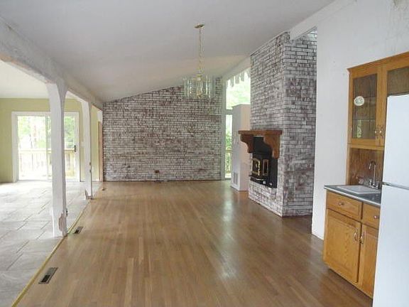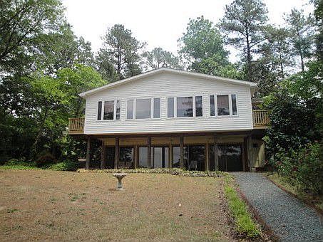 Special architectural design for spectacular lakefront views, the Living-Dining-Kitchen adjoins & opens to Carolina Room with a wall of windows.Living Rm fireplace soars to cathedral ceiling. Spacious kitchen redone recently.Many updates thoughout, new interior paint,new carpet, new vinyl, some new windows,repairs completed & move in ready. 35' Family Room & covered 35' Porch on lakeside.Purchase this home with as little as 3% down with HomePath loan