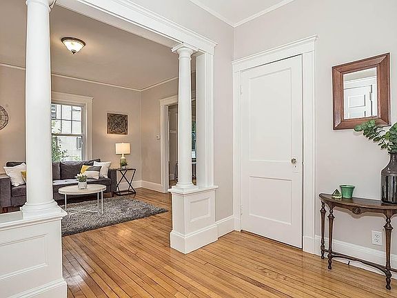Inviting, east-facing colonial in prime locale on pretty tree-lined street, close to the T & commuter rail, schools, Cushing Sq & Payson Park. A covered farmer's porch welcomes you inside where period details abound: large rooms, high ceilings, crown molding & gorgeous maple floors. Fresh neutral paint enhances abundant natural light, creating a feeling of warmth throughout. A gracious entry opens to a large sunny living room which flows to an over-sized dining room, perfect for larger gatherings. The gas kitchen, ready for a modern touch, features ample cabinets, pantry, & convenient half bath. A handsome side staircase brings you up to a tiled bath and 3 generous, corner bedrooms including a spacious master. A smaller, 4th bedroom is desirable "work from home" space while the level yard with beautiful fruit trees provides a welcome outdoor escape. Cosmetic updates to kitchen & baths plus expansion potential with the walk-up attic, could make this your forever home. By appt July 17-20