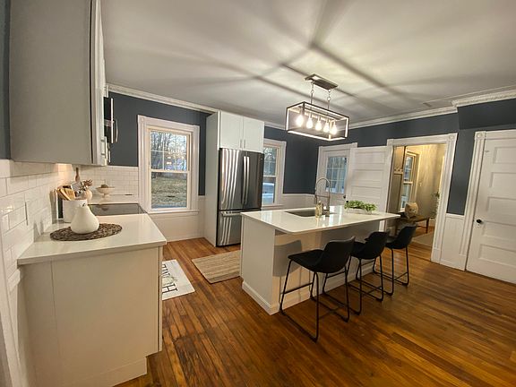 Charming 3 bedroom New Englander in Springvale, Maine. Home has many modern upgrades such as New kitchen with quartz countertops, new stainless steel appliances, fresh paint throughout, vinyl replacement windows, vinyl siding, blown in insulation, efficient propane monitor heaters, and a paved driveway. This unique home also offers many original features such as butlers/chefs pantry, dining room, hardwood floors, pocket doors, full basement and full walk up attic for lots of storage. Sit and relax on warm summer evenings on your wrap around farmers porch or enjoy a fire in your back yard. Springvale is a suburb of Sanford and is located in Southern Maine. A little over an hour from Boston and roughly 40 minutes to Portland. Close to schools ,shopping, walking trails, YMCA, and much more.