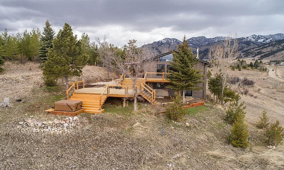 This Montana home on acreage is light, bright, and open. Lots of large windows let in the natural light and offer spectacular views of the Bridgers & Gallatin Valley. The great room with vaulted ceilings and updated hickory flooring has an airy feel, wood stove, and is open to the recently remodeled kitchen. New stainless steel appliances including an induction range. Lots of neat touches like fun light fixtures, ceiling fans, and trim made of reclaimed lumber from a grain silo in Malta. Walk out lower level would make a great master suite. The home is well situated on its 2.5 acre lot to maximize privacy and seclusion while taking in the views. Multi tiered decks provide ample outdoor living space and great access to the hot tub, which was new just last year. Additional Updates outside include professionally installed landscaping, new siding, and many new windows & doors. Great location provides country living with easy access to town. Call Today!