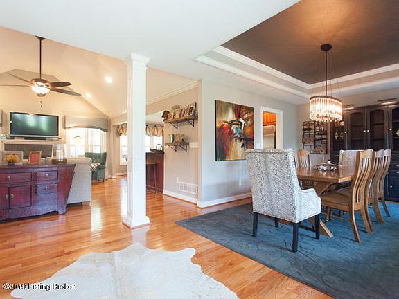 Come and tour this lovely, all brick and stone ranch sitting in a park-like setting in an established neighborhood! At the right of the entrance foyer, the formal dining with trey ceiling boasts a beautiful chandelier. or walk into the open Great room with cathedral ceiling and fireplace. The kitchen includes granite, stainless steel appliances, a large peninsula and breakfast nook. the luxurious and large master suite includes custom window treatments, huge master bath with jetted tub and walk-in shower and walk-in closet. A split bedroom plan also includes 2 bedrooms and a full bath on the main floor. The walk-out basement has a large family room with custom built-ins, possible 4th bedroom or office, full bath, laundry room and utility garage. The deck off the main floor is partially