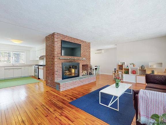 Who Wants THE PERFECT Mid Century Ranch? Totally renovated in 2013, this sweet home is located near the entrance to the village of Woodstock on a quiet country road. Much of the original charm has been retained while the gorgeous kitchen boasts quartz countertops, updated appliances and restored original cabinetry. Massive floor to ceiling brick fireplace is the centerpiece of the living room and exposed brick on the back of fireplace faces the kitchen. Gracious & Generously sized windows bring in natural light, gleaming hardwood floors throughout this home are in excellent shape. Both Full Bathrooms have radiant heating in floors which can be controlled remotely. Consciously renovated, this comfortable home now includes a finished lower level family room and 2nd full bathroom Even the garage is heated! Barn-style shed & hand crafted open woodshed are included as well as a beautiful free-standing play structure.
