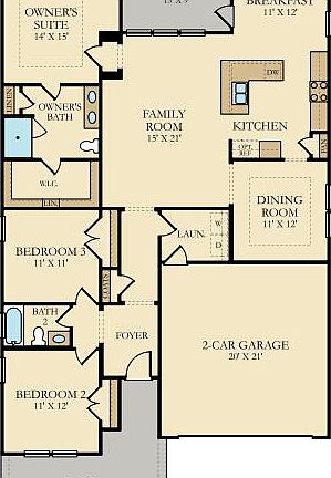 The Litchfield is one of our most popular floorplans and it's not hard to see why! This home features a formal dining room and an open-concept family room, kitchen and breakfast room with access to the patio for outdoor entertaining. This home has three bedrooms and two full baths on the main level including the owner's suite. An added second floor adds a fourth bedroom and bonus room as well as a third full bath. Ask us about our 5.5% fixed interest rate and $5,000 closing cost contribution with use of our designated lender!