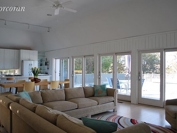 Open sun filled living room opens up to the heated pool, overlooking the bay. Three large bedrooms, two baths, a hot tub and modern kitchen make this a perfect spot to spend your winter. Bring your boat and tie it up to the dock or paddle board or kayak to nearby beaches in the fall, walk too the village in the winter or enjoy the view from in front of the fire.