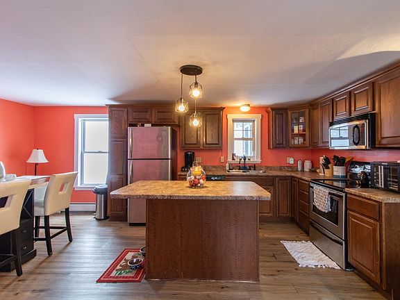 The last house on a dead-end road, this Newport City cape provides privacy while being just minutes away from all of the amenities downtown, as well as Newport Country Club, Lake Memphremagog, Gardner Memorial Park, Pomerleau Park, and the recreation path. You’ll appreciate the large mudroom entry as there’s plenty of room for coats, shoes, and boots, as well as bikes and toys. With windows along 2 walls, the living room is nice and bright, and there’s a door directly out to the deck. The L-shaped kitchen features mostly stainless appliances and a center island with seating. A trio of windows in the dining nook overlook the backyard, and also open to the kitchen is a cozy seating area with gas fireplace. A 3/4 bath completes this level. Wide pine board floors flow through the upstairs, where you’ll find 2 average size bedrooms and the spacious primary bedroom with vaulted ceiling, exposed wood beams and double closets. There’s also a full bath and additional closet space in the hallway. If you’re looking for a home with character, this could be the one.