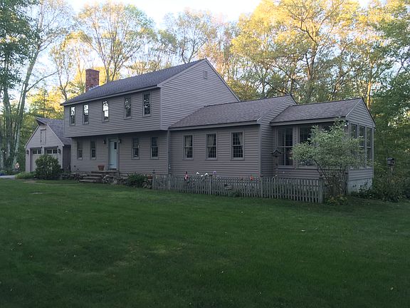 Garrison Front Colonial with many period appointments - wide pine floors, chair rail, crown molding, 12 over 12 windows. Sun room and commercial kitchen with soapstone countertops. Attached 2-car garage. Shed plus additional storage in finished basement. Country road with stone walls; acre lot