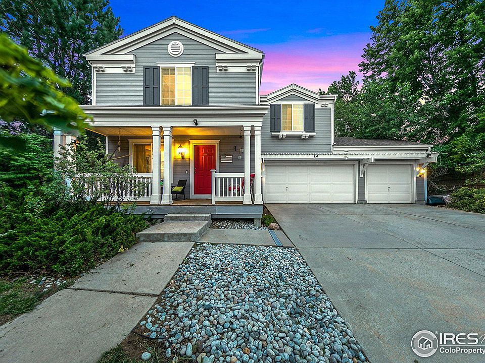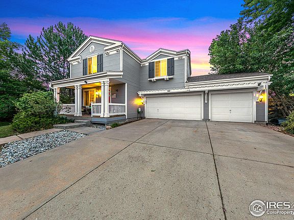 NEW carpet upstairs and FRESH neutral paint in bedrooms & bsmt. Private cul-de-sac location on over a 1/4-acre lot with only one neighbor Close to walking/ biking trails and a short distance to downtown Erie. This lovely, 4 bed, 3 bath home awaits you with a welcoming, covered front porch. Main floor features a large living room with cozy gas fireplace, dining room with views to the landscaped backyard & kitchen with wood flooring, stainless appliances, granite counters, pantry, and new composite sink. Kitchen Island stays. Upper level includes a bonus Flex area with wood flooring, all bedrooms on the same level, and a full bath. Primary suite feels lofty and light with vaulted ceilings and skylights and has a 3/4 bath with double sinks. Finished basement offers another living space and bathroom. Oversized, 3-car attached garage is heated. Large trees, mature landscaping, & fantastic backyard deck with hot tub. Everything has been done so you can bring your stuff and move right in! Listing agent