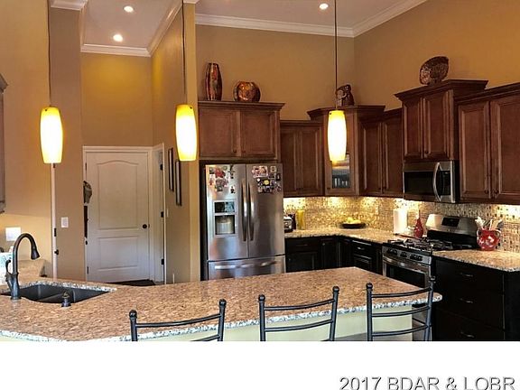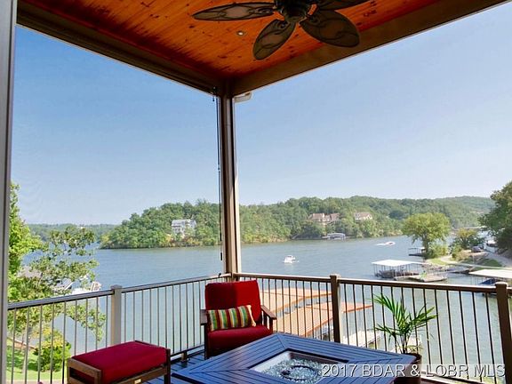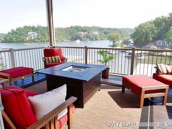 Stunning newer home with cove protection featuring amazing views. Cruiser slip in large dock that is perfect for entertaining. Gated subdivision that is close to Camdenton with easy access on all paved roads lead to this home which shows like a dream. Hardwood floors, soaring ceilings, windows that frame picturesque views of the lake, and a screened porch that promises to take your breath away. This home features craftsmanship that is second to none with crown moldings, walk in tile shower, custom kitchen cabinets, designer landscape, and a cart path from your garage to your dock walkway. All composite decking w/ new electric to the dock. Irrigated lawn, with easy maintenance. Amazing cruiser dock w/ great living ares on the dock.