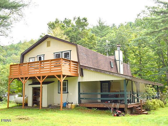 Lackawaxen Riverfront renovated beauty! Gambrel style raised ranch with front and back decks plus 3 covered porches. Level 2 acre lot, entire home renovated with new flooring, baths, kitchen upgrade, beautiful stone work and rustic trim. Enjoy fishing and rafting right outside your front door - Central location, close to Honesdale and Hawley and Lake Wallenpaupack and no community dues and low taxes!