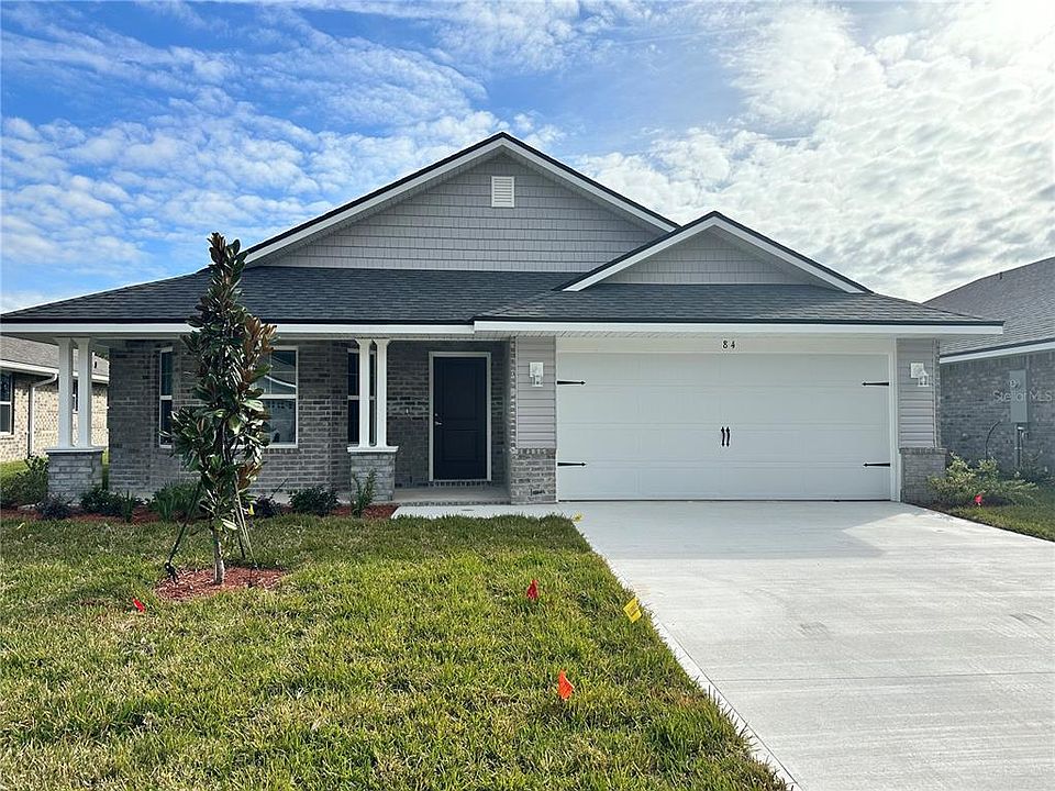 LIMITED TIME ONLY!! UP TO $20,000 FLEX CASH, PLUS FREE Whirlpool Move-in stainless steel package! CLOSING COSTS Paid when using an approved lender (excludes pre-paids & escrows). Price includes LOT! Only $1,000 deposit due at time of contract. No surprises with Adams Homes up-front pricing. Find peace of mind in the beautiful Sawmill Creek Community. Community living offers an oversized Pool & Cabana, miles of nature trails, perfect for hiking and biking, underground utilities and streetlights throughout. This home features ceramic tile throughout living space w/carpet in bedrooms. Primary bath has tiled shower with door. The virtually maintenance free brick exterior has a covered front porch and rear lanai to enjoy the beautiful water view from your own backyard. The interior of this home offers wood cabinets with crown molding, 5-panel wood doors, high ceilings and stainless-steel Whirlpool appliances which includes stove, dishwasher, microwave and disposal. The double paned windows offer energy efficiency and an abundance of natural light. Photos may differ from actual home. Quick and easy access to 95 North or South for all your shopping, beaches and recreation parks.