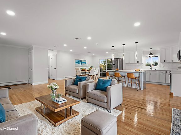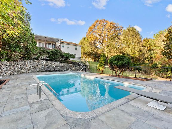 This home was rebuilt with heart, precision, and purpose. This 3-bedroom, 3-full-bath ranch delivers effortless one-level living with the bonus of a fully finished walk-out lower level, designed for modern comfort and unforgettable gatherings. The open main floor is filled with natural light, showcasing new hardwoods, detailed crown molding, new trim, recessed lighting, and a stone-faced fireplace that anchors the space. The kitchen was crafted for connection-white shaker cabinetry, quartz countertops, stainless steel appliances, and a generous island, wide open to the dining and living areas for seamless flow. All 3 baths were rebuilt from the studs with large tile, matte-black fixtures, stylish vanities, and designer lighting. Downstairs, the walk-out finished lower level expands the living space with luxury vinyl plank flooring, a 2nd fireplace with a sleek black hearth, laundry area, storage, a dedicated bonus room, and a full bath-perfect for flexible living or extended guests. Stone steps lead to a bluestone-style patio, newly cleared lawn, and a fenced, in-ground pool (~40,000 gal.), setting the stage for summer parties or quiet evenings under the lights. Above, an expansive deck offers sweeping views across the distant hills, blending privacy with a sense of open space. A two-car garage completes the package, offering both convenience and function. Set on a quiet residential street just minutes from a growing town center, highways, restaurants, and new developments.