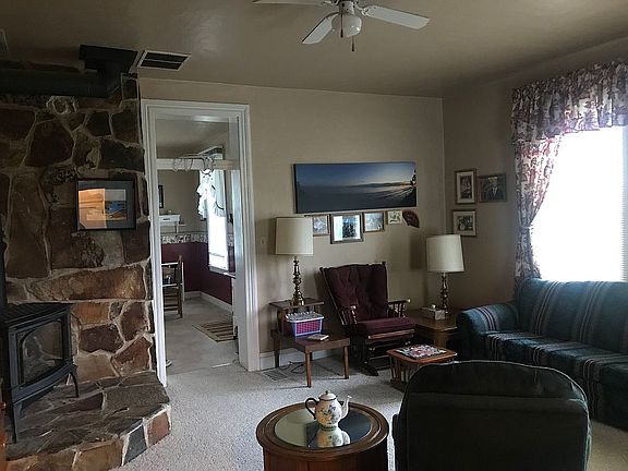 Quaint Hyrum home, 10 ft ceilings, cozy gas stove in living room, single car attached garage, large yard with automatic sprinkler system, new roof and exterior paint in 2018.