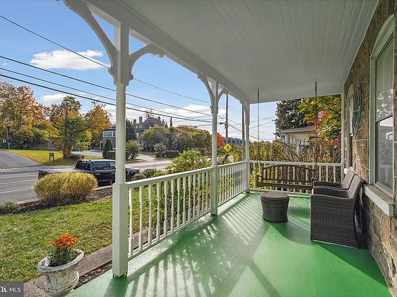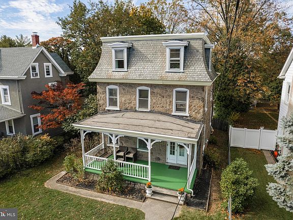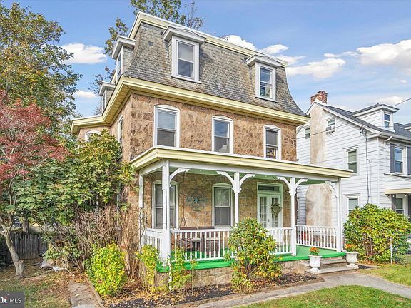 Welcome home to this historic 4 bedroom, 2 full bath home located in Ambler Borough and the desirable Wissahickon school district. This traditional well built stone home includes over 2,600 square feet of finished space and sits on a generous lot with access to a rear alley. The front foyer showcases a beautiful wooden banister and newel post. Original wide plank wood flooring runs throughout the foyer, living room and dining room. The freshly painted living room and dining room are joined by a wide doorway which can be separated by one of two original wood pocket doors. The dining room also features a bay window and a pass-through window into the kitchen. The other set of pocket doors is between the foyer and living room. The light-filled first floor has a large kitchen which features wood cabinets, stainless steel appliances, and a quartz countertop on the center island. A rear mudroom, which can house the laundry if desired, and a full bath complete the first floor. The second floor features the main bedroom which boasts a walk-in closet and ceiling fan. The second, spacious full bath is located on the second floor. This bathroom features a claw-foot tub, stand up shower, and dual sinks for the ultimate convenience. A well sized bedroom and bonus area, which can be used as a seating or play area, round out the second floor. The third floor also includes bonus space near the stairs, and two more bedrooms. The basement features the washer and dryer and lots of storage space. The front porch has a lovely porch swing and mature lilacs which provide some privacy. The rear yard, which extends all the way to the alley, offers plenty of space for entertaining or flat space for kids to play, a built-in fire pit, and includes a new custom built shed. There is availability to add a parking pad in the rear of the yard if one desires off street parking. The location of this home can’t be beat, with a short walk into Ambler, the train, and its many restaurants, it is also close to the turnpike and 309. The home was originally built by Dr. Mattison (who built the castle at Mattison Estates) for his mother. With only two previous owners, this house is ready for a new owner who can call it home.