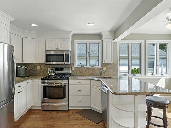 Prime location! The beloved Fells is literally out your front door- enjoy miles of trails and natural beauty, yet live moments to 93 with easy access to Boston! This classic 1908 colonial has been thoughtfully renovated in recent years. Step in to find a desirable open floor plan. The living room with cozy gas fireplace is where you will find yourself this fall, watching the big game or catching up on your favorite shows. Adjacent is the dining room, and the entire space has beautiful hardwood flooring and recessed lighting. Beyond find the updated white kitchen, with granite counters, hardwood floors, great storage and access to the adorable backyard with sunny deck- outdoor space is key! Back inside, head upstairs to find 2 bedrooms (main bedroom is so spacious and has custom built-ins) plus a smaller private office. Both bathrooms have been updated. Important updates include 2022 gas heating system, 6 year old mini-splits, and more. Move right. in and enjoy single family living!