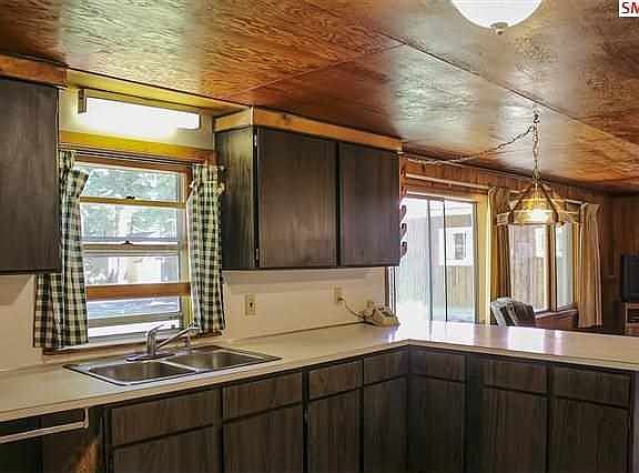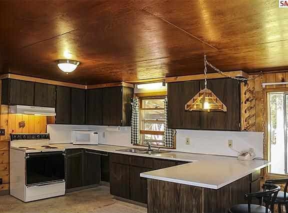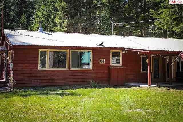 Vintage cabin charm. Pine interior, new carpet and new linoleum. Remodeled bathroom. 2 bedrooms.Deeded property. Lake access is just around the corner. Marina is walking distance All you need to do is add your personal lodge/country designs! 2 car detached garage has a bunk room with bathroom and laundry area. Perfect for your overniters. New painted exterior. Breezway could be used as additonal living space.Wood stove and electric heat. Drilled well.Connected to sewer. Common roof and common b
