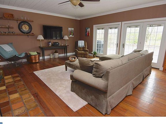 Very inviting and well cared for custom home situated on 5+ acres. Gorgeous Stone exterior with a large paved patio area and firepit. You'll enter into the huge living room and notice immediately the central stone fireplace. Simply gorgeous. You can imagine sitting in this bright inviting room enjoying the view or the fireplace. The wood floors in the LR, DR and hall are a unique hardwood in the mahogany family. This home was well thought out. It has a workshop/mudroom and~ is roughed in to add a powder room. There is also a den/office off of the dining room. Very nice cherry kitchen that includes an entire pantry room with beautiful cabinets, microwave and loads of extra counter space. Large master with dressing area, 2 closets and an en-suite bath. The spare bedrooms are large and bright and have walnut flooring. The sellers have added some crown moulding as well as updating the roof, siding, gutters and down spouts. Talk about energy efficiency! This earth home has multiple possibilities for heating and cooling. There is propane heat, the home is wired for electric baseboard, the wood-stove is connected to the ducts and there is a split system for central air which is also a heat pump. Super rural setting teeming with wildlife, but close to major roads as well as Blue Marsh Lake Rec area. So much to offer. This home was pre-inspected and the reports are available. We've also included a 1 Year HMS Warranty with acceptable offer. Home to be sold 'As-Is. You will not want to miss this home!