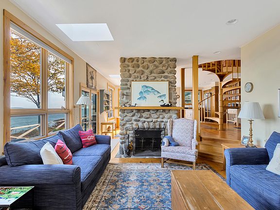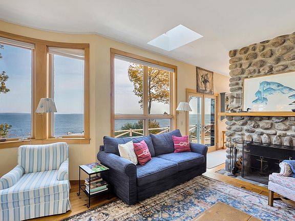 Back on the market with improvements; newly re-shingled roof and window replacements. Only gets better as time goes by. Perched on the water's edge, surrounded by protected acreage, this year round cottage boasts spectacular Penobscot Bay views, just minutes from popular Camden Village and its year round amenities. Four bedrooms, three full baths, two fireplaces with locally sourced stonework, creates a natural complement to the shingle siding. Open deck and glassed-in-sunroom bring a rustic ambience to this wooded sanctuary affording Coastal Maine intrigue. If water frontage and superior water views are on one's radar 84 Sherman's Drive is a must see.