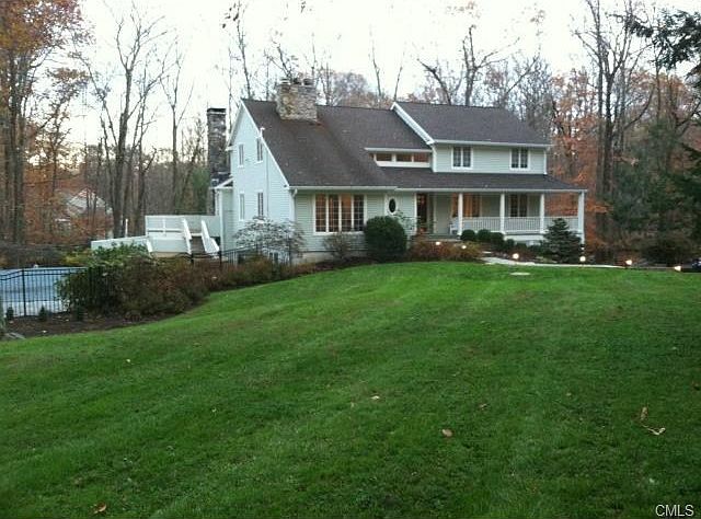 This picture perfect Modern Farmhouse radiates charm & style. A wrap around porch joins a gorgeous yard by up and coming landscape artist, Florence Mraz using native CT plants, as well as an in-ground pool, pool house & level manicured lawn. Wide open living spaces create a wonderful flow throughout the home. The sunken Living Rm enjoys a vaulted ceiling that is complemented by a similar design in the wonderful Family Rm. Divided by the "informal" Dining Rm w/a wet bar, these spaces are perfect for snuggling up to a cozy fire or entertaining during large gatherings. The KIT and lower level were renovated by award-winning designer Molly Patton Design. The eat-in KIT connects to a spacious Breakfast area w/access to a large deck that connects to the wrap around porch & incl prof stainless steel appliances & a quartz waterfall + island. A Home Office w/built-in cabinetry & French doors connects to an add'l Study for an abundance of at-home work space. A half bath and large Mud Rm complete the level. The serene master suite has a reclaimed wood feature wall, full-size Dressing Rm & updated Master Bath. In addition are 3 add'l, well-sized bedrooms + spacious, beautifully renovated bath. The LL functions well as an au pair/in-law suite w/Bedroom, full bath & living space. Beautiful gardens, sweeping lawns, a hot tub, outdoor Kitchen & fireplace & fabulous gunite pool create beautiful curb appeal. Only minutes to town & the best location for commuting into NYC & all points south.