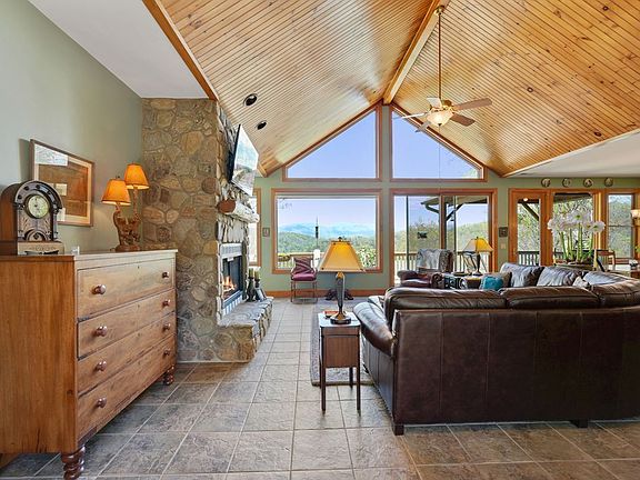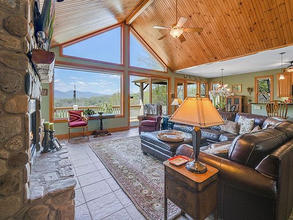 The most CAPTIVATING LONG RANGE, LAYERED VIEWS you can image! Welcome to 84 Silverado Trail, located in gated, beautiful Smoky Mountain Country Club in Western North Carolina.This lovely home was designed so that every room has a full view of the mountains and golf course.Every detail was well thought-out by the owners, who had the home built. A stately stone front entrance welcomes you in and opens to a great room with soaring wood ceilings, huge windows, and multiple glass doors.The open-concept invites all to enjoy each other's company throughout the main level and on the huge semi-covered deck.Primary bedroom is on the main level.The lower level sports a big family room with kitchenette and two large bedrooms.Quality expresses itself by the presence of granite countertops in the kitchen, HUGE refrigerator/freezer,newer gas stove, tiled flooring on the main level, hardwoods on the lower level, tiled bathrooms,and excellent lighting.Storage spaces are plentiful.The home sits high up on a mountain knoll, yet the drive to it is not too steep, and completely paved. Amenities include outdoor pool with hot tub,lighted tennis courts, & equipment room. Don't miss the 3-D walk-through!