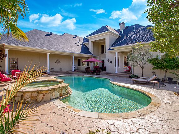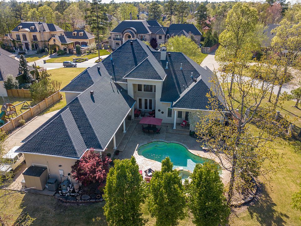 Pristine and stately custom built one-owner home located in prestigious gated Sologne Circle! Well thoughtout floorplan. Huge master suite and guest bedroom on the main floor, as well as media room.Vaulted ceilings in entry and living area. Chef's kitchen w/formal dining and butler's pantry.Beautiful views of the pool from the master, living and breakfast areas. 2 huge bedrooms up and playrooms. Huge corner lot w/over a half acre and beautiful pool area with outdoor cooking area and half bath. COME SEE!!