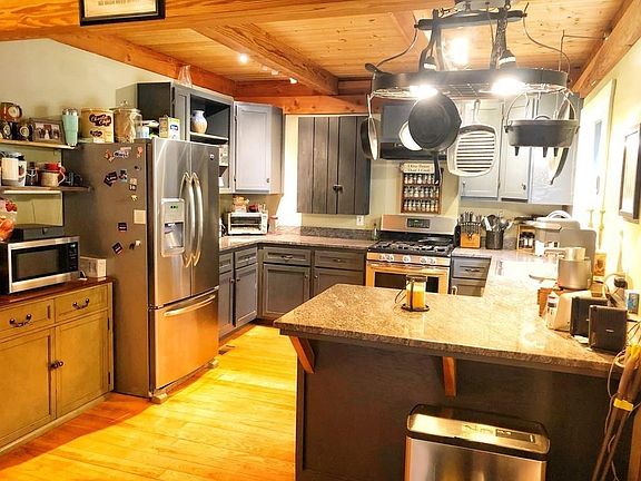 Private oasis! This beautiful 3 bedroom,1.5 bath, Habitat Post & Beam is set well back from the road on over 7 acres of land approximately one mile from the Petersham Common. High speed internet connected! You will feel at home the moment you step into the sizable mudroom that is furnished with ceramic tile and a Jotul wood stove. Boasting an open first floor layout with sliding doors leading out to a large deck, a kitchen equipped with stainless steel appliances and granite countertops, this home is perfect for entertaining! During warmer months, enjoy the coolness of the mini-split system. Surrounded by the tranquility of nature, you can enjoy spending your time outside on your bluestone patio/firepit, having breakfast on the deck, or brushing up on hobbies in a beautiful timber-frame barn.This home also has a fully owned solar panel system with SREC income well as a locally built 97% efficient Masonry Heater for winter comfort-making this home a one of a kind property!