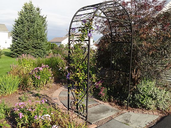 Sun drenched 2 story foyer with turned staircase & ceramic floor makes for a beautiful entry to great room or spacious kitchen. Gas fireplace, central air, over sized garage with storage/workshop area, master suite has it all - large walk-in closet, double sink vanity, separate shower and whirlpool tub. Mature yard, beautiful flowers & landscaping ...foliage provides privacy, fenced back yard for pets or young children,, beautiful flower beds everywhere, landscaped pond, deck, even a potting shed. Spencerport schools.. Quick possession