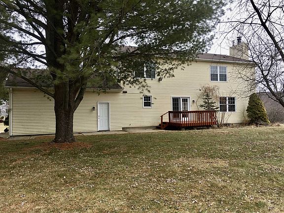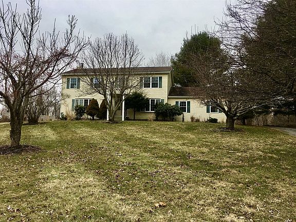 This spacious home on 1.2 acres is in move-in condition. The kitchen, dining room and family room (with wood burning fireplace) offer an open floor plan. Also on the first floor is a living room/library, laundry room, half bath, sliding glass doors off the kitchen leading to a deck that overlooks a huge, beautiful back yard, and an entrance to the garage. Upstairs there is a large master bedroom with bathroom en suite, three additional bedrooms and a second full bathroom. The large unfinished basement could be easily finished for additional living space. Property is bank owned and being sold as-is , although the house appears to be in good condition and well maintained. This is a community water & septic, not private well and septic. There is a quarterly water/septic fee.