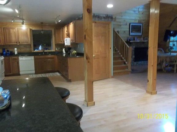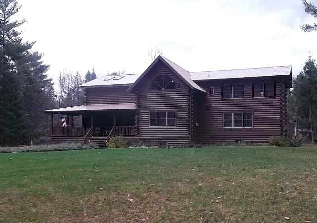Fantastic features abound in this gorgeous log home! Totally set up for entertaning in & out! Open kitchen features Kemper cherry cabinets & granite counter tops with island! *3 additional finished rooms in the basement of equal quality could be used as additional bedrooms as there is a door for egress. There are two family rooms, one with a wet sports bar with mini fridge, a huge screened party room in the back yard 16 x 24, (swing set will remain). Great place to raise your family on this 24.6 acre rural sanctuary with walking trails and wildlife! Baseboard Propane Peerless heat (2013) and wood. Garage has power, water and loft. 2 Story addition on right side built in 2008. Hurry to see!