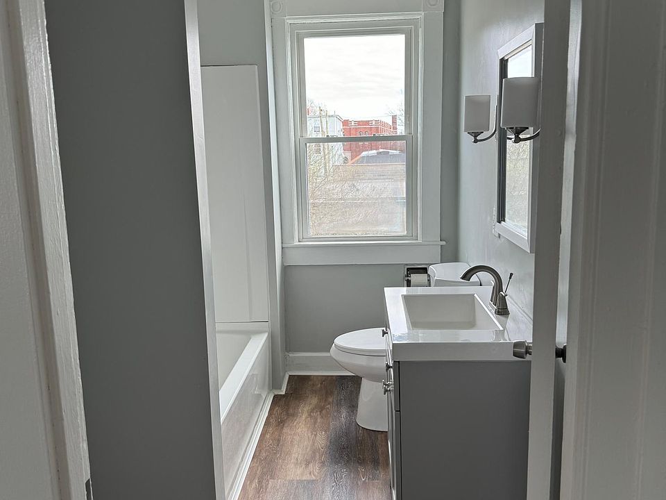 2nd FLOOR APARTMENT FRESHLY PAINTED , BRAND NEW KITCHEN WITH REFRIG , STOVE AND DISHWASHER.OPEN FLOOR PLAN HAS LIVING AND DINNING AREA. 2 BEDROOMS. BRAND NEW BATHROOM. ALL HARD WOOD FLOORS IN LIVING, DINNING AND BEDROOMS. NEW FLOORING IN KITCHEN AND BATH. WASHER AND DRYER UNITS IN BASEMENT. LARGE BACK YARD. NO LEAD CERTIFICATE CANT RENT TO KIDS UNDER 6. OWNER PAYS FOR WATER AND SEWER FEES , RENTER PAYS FOR GAS AND ELECTRIC. NO SMOKING !