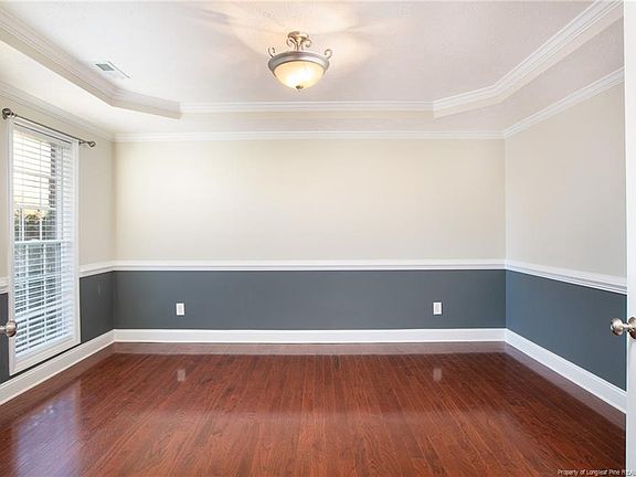 Super house waiting for new super owners! Close to Fort Bragg, Fayetteville, and Sanford. Neighborhood includes clubhouse, fitness center, pool, and playground! Big front porch and pretty landscaping & brick veneer. 2 story foyer with attractive hardwood flooring. Formal dining room and study both with hardwood floors, trey ceiling, crown molding, and chair rail. Impressive kitchen comes with tile floor, 3 sides of cabinets, track lighting, granite counters, tile backsplash, SS appliances, breakfast bar, and crown molding. Sunroom off the kitchen leads to stamped concrete patio and backyard with a privacy fence. Master suite is spacious with a trey ceiling, jetted tub, and WIC! Huge bonus room with lots of potential could be the 4th bedroom and has an office nook. Fresh paint throughout the house. Welcome Home!