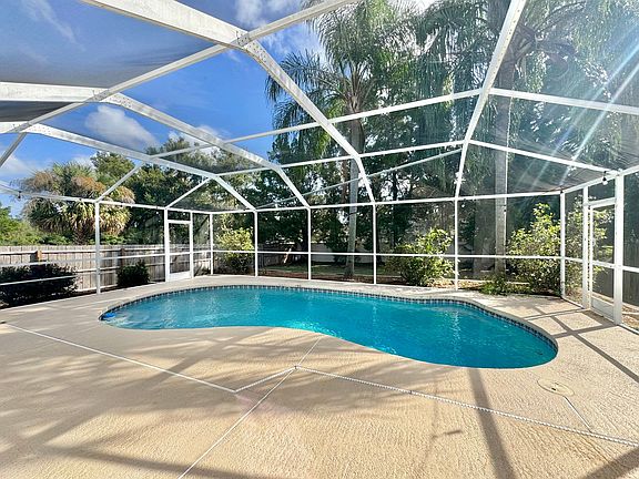 Located in southeast Winter Haven, this 3-bedroom 2-bath PLUS an office/den POOL home with fenced in backyard. Upon entering you arrive in the long foyer, to the right is the formal dining room and to the left is a large linen/storage closet, utility closet, and a bedroom with a walk-in closet. Open floor plan, formal dining room overlooking the kitchen into the living room with views of the pool and screened in large lanai. Kitchen is equipped with appliances and small breakfast bar. Off the living room is the guest bath, 3rd bedroom to the left and primary bedroom to the right. Nestled between these rooms is a smaller fourth bedroom with a closet, ideal for a home office or den. The primary suite boasts a walk-in closet with high ceilings and a full bath featuring a tub/shower combination. Smaller garage, great room for storage with or lawn equipment but not for a vehicle.