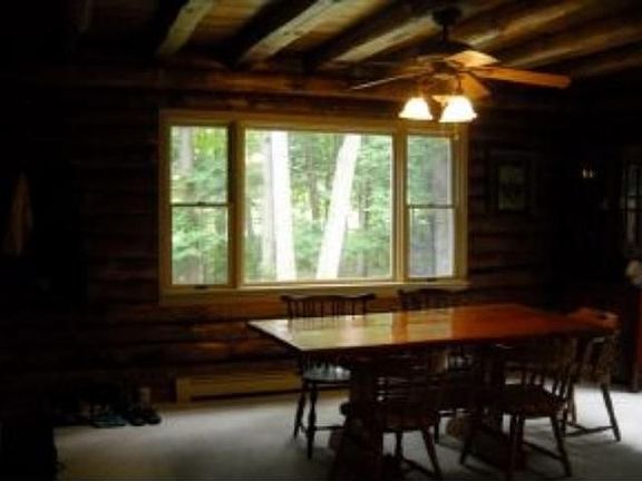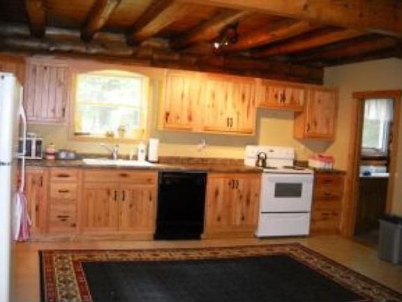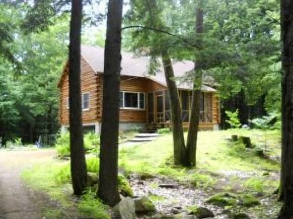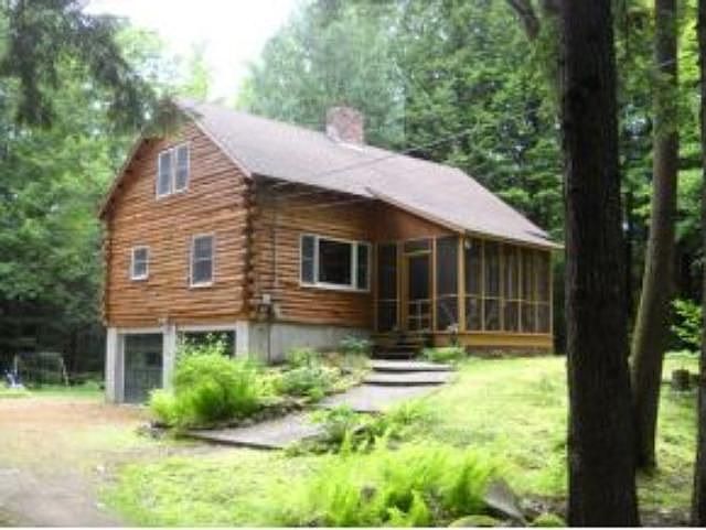 Private log home set amidst forest, gardens and babbling brook on 5+ acres. This 3 bedroom, 1.5 bath home has recently been completely renovated with new kitchen, flooring, bath, and roof. Home offers open-concept living with fireplace, fully applianced kitchen open to dining,along with screened porch; 2nd level offers three bedrooms, master bath and den; full walkout basement, with garage doors and potential for 2 car garage. Perfect year round or second home, close to summer Winnipesaukee amenities, and winter skiing at Gunstock.