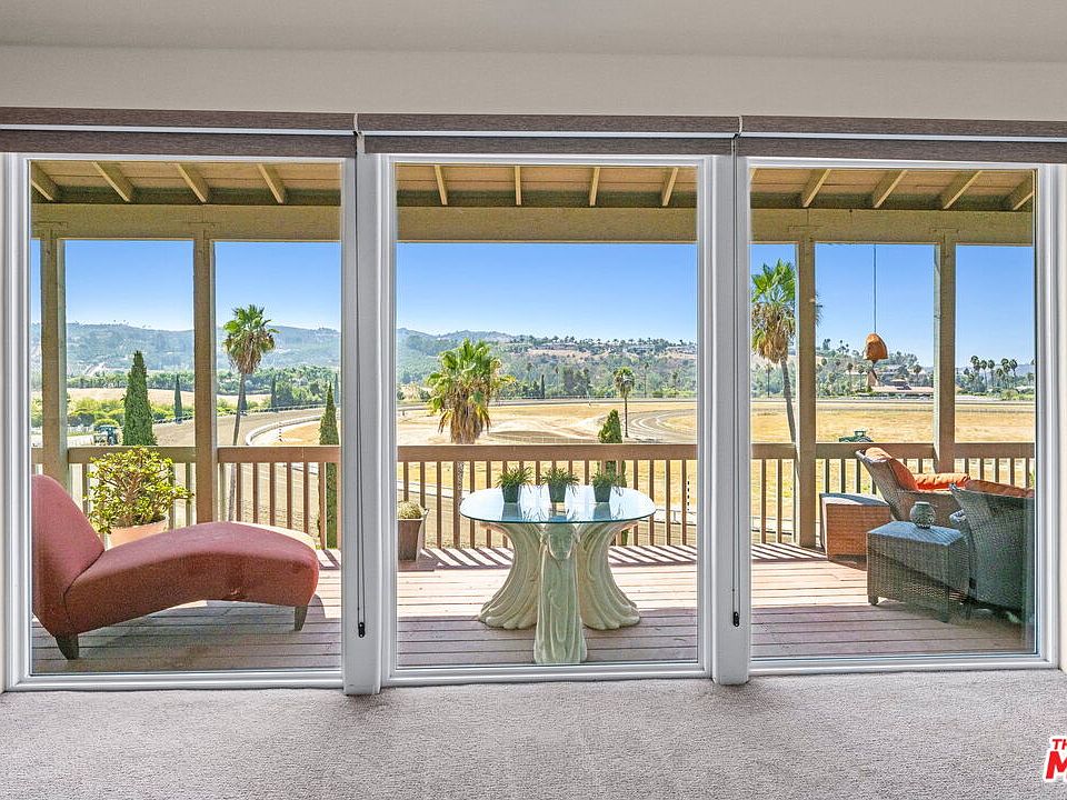 A rare offering in the Terrace Downs gated community. You don't want to miss this wonderful opportunity to enjoy your morning coffee with a full view of the San Luis Rey training center track. The horses run six days per week from 5:30 am to 11:30 am for your viewing pleasure. This well cared for home boasts cathedral ceilings with an abundance of natural light throughout. Bathrooms have been recently remodeled. An open floor plan with floor to ceiling windows for expansive views will not disappoint the most discerning buyer. Enjoy epic sunsets on the full length balcony overlooking beautiful mountain vistas. Sited at the end of a cul-de-sac, you will enjoy a sense of privacy for quiet enjoyment. Solar panels (owned) for extremely low utility bills for this fully electric home. Large 2-car garage with abundant built in cabinets. This private gated community has two pools. In close proximity to Temecula Wine Country & about twenty minutes to the beach. Top rated Bonsall schools (Click on community - school for detailed information). Shopping & dining are also in close proximity. The 15 freeway & State Route 76 allow easy access for travel. Easy to show, come take a look at this exceptional home!