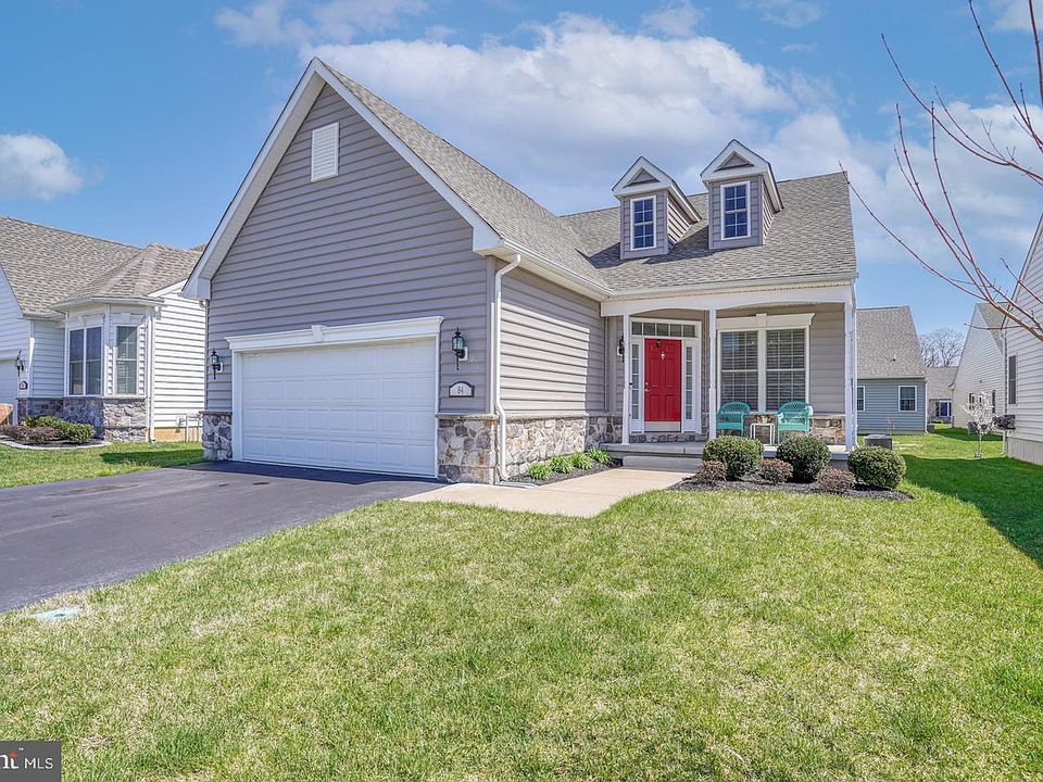 Why wait for new construction? Attention to detail, plus unique features such as hardwood flooring from the foyer into the dining room separated by an architectural column in this larger model with 2200 square feet of living space at this price make this home a great buy! A large first floor master suite with two closets and ensuite bathroom, split from other bedrooms for privacy. The first floor second bedroom is next to the hall bath. The incredible third floor suite offers a private bedroom, bathroom and sitting room. Vaulted ceilings with ceiling fan in the great room with sliding door to the deck is open to the kitchen with snack bar, 42-inch cherry finished wood cabinetry, solid surface countertops, large pantry and stainless-steel appliances flows into the dining room. The seller is including high end set of Electrolux washer and dryer. The home has a bright and airy feeling. Enjoy your morning beverage on the rear deck or settle in at night to gaze at the stars. Professionally landscaped the summer of 2021 with automatic water system. Your new life awaits in highly sought-after Village of Eastridge, an adult community with a fitness center in the Clubhouse, 34 acres of Open Space, Walking Trails and More! Schedule your tour right away. You dont want to miss this opportunity! Seller is offering a free 1 year home warranty to the buyer.