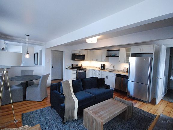 84 High St Unit 3 - Second Floor unit with the perfect combination of new build and charm. This property is fully furnished and available at quoted rate thru May 2023. Revel in this historic urban chic unit with its bright and airy feel. This is a second floor 2 Bedroom 2 Bath unit is located in the desirable Center and Historic District of Portland overlooking the Port. This 4 unit building has been completely renovated inside and out. Enjoy the upscale features including stunning hardwood floors, top of the line granite countertops, custom kitchen and bath cabinetry, natural gas range and oven, and quality stainless appliances. Living area offers a wall mount flat screen t.v. located above a non working original fireplace for added ambiance and couch with a queen size pullout to allow for 2 additional guests with water views. Master Bedroom includes a king size bed with top of the line linens, a flat panel television, dresser and its own heat and A/C unit. Bathroom offers an oversized beautiful tile shower with glass enclosure and vanity with storage below. Second Bedroom includes a queen size bed with top of the line linens, a flat panel television, dresser and its own heat and A/C unit. Unit includes a private full size stackable washer/dryer, efficient heat/AIR CONDITIONING units and one dedicated off-street parking space. Soaring ceilings and oversized windows allow for beautiful natural sunlight throughout the unit with gorgeous views of the Old Port. 84 High Street, in the heart of Portland, Maine is perfect for large group accommodations. Whether you're planning a wedding, a corporate retreat, or a vacation with a group of friends, this multifamily unit could work for you. There are options to rent anywhere between one and four units at a time, which can sleep from 4 to 21 guests respectively. Amenities Bedroom Accommodations: Bedroom 1: King Bedroom 2: Queen Living Room: Queen Pullout Gourmet Kitchen: Custom cabinetry and granite counter tops Stainless French door refrigerator with pull out drawer freezer Large stainless under mount sink with pull out spray faucet for ease of use Stainless 4 burner natural gas over and stovetop with venting microwave above Stainless dishwasher 2 Luxury Baths: Glass shower enclosure Vanity with granite countertop, large sink basin and cabinet storage below Linen cabinet equipped with 5 shelves for storage Normal height elongated toilet with slow closing lid Amenities throughout the unit: Hardwood Floors Granite Countertops Stainless Appliance Dishwasher Microwave Washer/Dryer High Ceilings Large Energy Efficient Windows Off Street Parking Keyless Entry You'll be steps from Portland Museum of Art, Children's Museum of Maine, steps from Victoria Mansion,Wadsworth-Longfellow House, a short stroll from Portlands Waterfront and ample award winning eateries. Condo is fully furnished and includes utilities. Price is available at quoted rate thru May 2023 only.