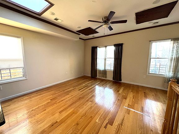 Welcome to this inviting 3 bedroom 2 bath apartment with a great layout and finishes throughout. It features hardwood floors all throughout the unit and lots of space. Open layout for the formal living room and dining room with skylights, lots of sunlight giving it a radiant glow. Kitchen is fully equipped with a dishwasher, refrigerator, microwave, stove and a breakfast bar with elegant lighting. Primary bedroom with a private full bath and large closet. Washer and dryer inside the unit. All separate utilities, tenant will be responsible to pay 50% of the water/sewer bill. No parking and no use of backyard. Minutes away from JSQ/ Path station and restaurants, shopping area. Public transportation a few blocks away. Don't miss this opportunity and book your appointment today!