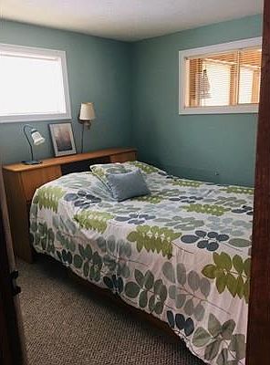Three season cottage with deck and enclosed porch. Open plan living with vaulted ceiling, loft, kitchen/dining, two bedrooms, one bath on just shy of a half acre corner lot. Walk to either lakes for swimming, fishing and kayaking.