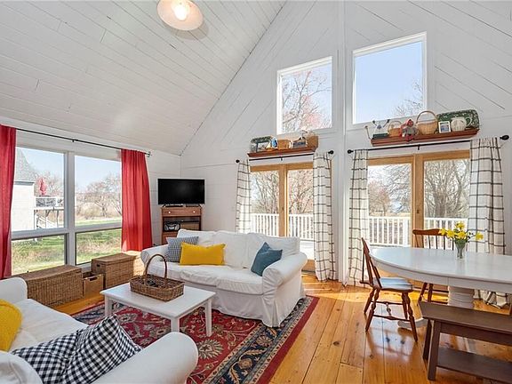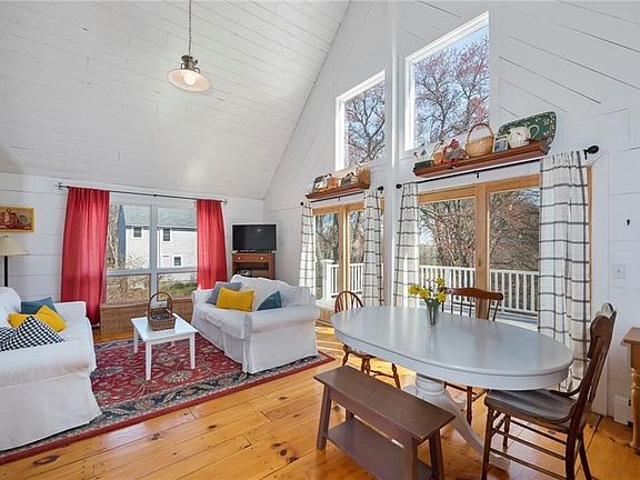 Welcome to this sweet 2 bedroom, 1 bath cape in the lovely beach community of Green Hill. A marvelously efficient design featuring an open living area, first floor bedrooms, custom pine floors and ceilings, light, bright living space, cathedral ceiling and winter waterviews. The living area has sliding glass doors that open out to the deck. Relish beautiful vistas from the wraparound deck overlooking the yard with winter waterviews out to the pond. Deck offers 420 sqft of outdoor living space. Rinse off after a sun and sandfilled day at the beach in the outdoor shower. This property is being sold with Plat 89-3 Lot 59 on Twin Penisula Rd giving private access to Green Hill Pond. Also, included is a private beach condo parking spot at Green Hill Beach Plat 96-1 Lot 87-18. Green Hill Beach is approximately a mile from the house. This home is 200 yards /- from Green Hill Pond. Green Hill Park is around the corner. Take the kids to the playground, play tennis, basketball or sand volleyball. Close to tasty restaurants, awesome shopping, train station, golf, tennis, boating and swimming. 1/2 hour drive to Newport or Mystic, 3 hour drive to NYC and 1 1/2 hour drive to Boston. Listen to the sound of the ocean and smell the salt air. Great spot for year round living or summer fun! Sold turn key! Oh yes, this home is offered completely furnished. Just bring your suitcase and relax because there is nothing to do!!!