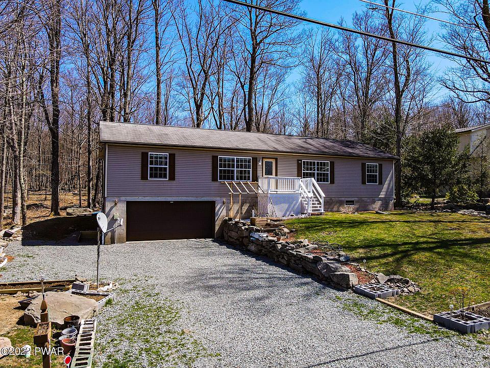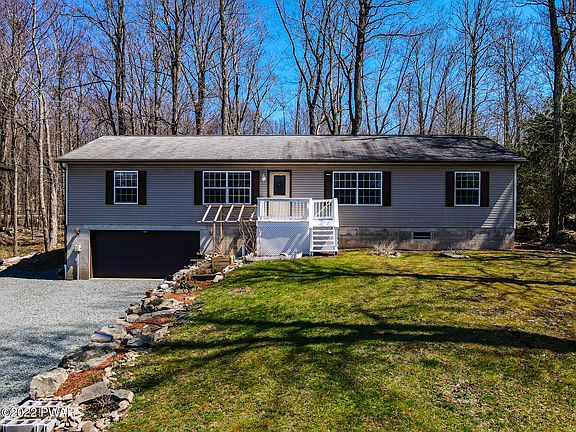 This Spacious Ranch home has something for everyone.! A large formal dinning room, kitchen and primary bedroom that includes a primary bath suit with a jetted soaking tub. This home has two additional bedrooms at the other end of the home including a second bathroom. This home includes a large basement with two more additional rooms and a two car garage and as well. This four season amenity filled community in the Northern Poconos is just two hours from metropolitan New York City and Philadelphia Areas.