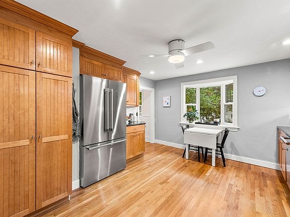 Classic center entrance New England colonial is ready for its next owners! This move-in ready 4 bedroom, 3.5 bathroom home is full of charm and character. The first floor features a modern kitchen with maple cabinets, granite countertops, high-end appliances and plenty of storage. Directly off of the kitchen is a large dining room with wainscoting and two built in china cabinets. A comfortable living room, separate den/office and 1/2 bath complete this level. On the second floor, you will find three generously sized bedrooms including a junior primary with en-suite bathroom. A second full bathroom with a tiled tub completes this level. The third level features a beautiful and spacious primary suite. The basement offers potential additional space and a direct walk-out to the back patio and extensive yard. A 3 car driveway and 2 car detached garage complete this great home. Terrific location close to the town center, restaurants, shops, public transportation and easy highway access.