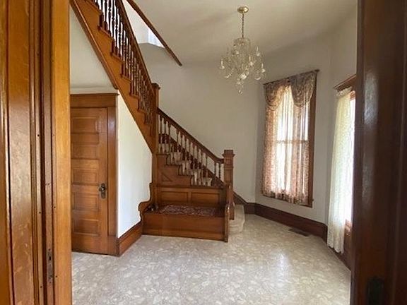 Beautiful 4 bed home on large lot. Great location in small town! High ceilings and lots of space. Potential for 5th bedroom in office on 2nd floor. 1 car garage with "man cave" plus additional storage building. Primary bed with attached bathroom on main floor. Main floor laundry. Large bedrooms and upstairs landing reading nook at the top of the gorgeous staircase. Brand new propane heating system in 2022. Following are approx. 10 years old, siding with insulation, roof, water heater & circuit box.