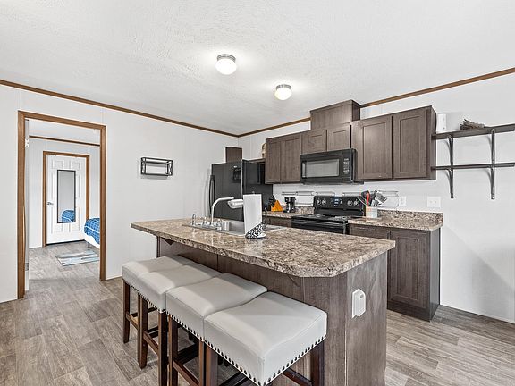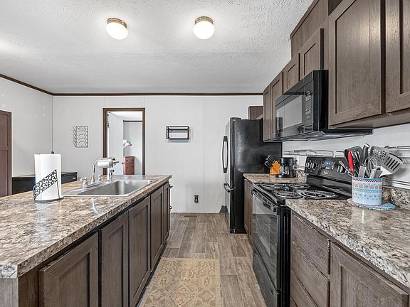Listed by Jess Skinner, KWBH, 605-490-4094. Enjoy single level living in this nearly 1,100qft mobile home offering 3 bedrooms and 2bathrooms on a rented lot! *Open concept main living area with a spacious living room that opens to the kitchen and dining areas *Galleystyle kitchen with good cabinet and counter space, black appliances, and an island with breakfast bar for added seating *Master suite in back of the home with walk in closet and ensuite bathroom with shower/tub combo *2 bedrooms and 1 bathroom on other end of home- great space to spread out *Separate laundry area in hallway with shelf storage *Flat yard*Good parking space available out front. Located in a quiet neighborhood with easy access to shopping and restaurants- call today.