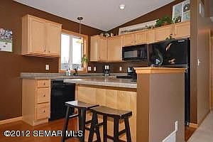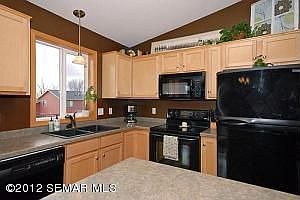 Fantastic buy in the award winning Byron school district! Kitchen features maple cabinets, hardwood floors, modern black appliances, snack bar and dining with access to deck. 4 bedrooms, 2 modern baths with LL bath featuring in-floor heat. Relax in the family room with a cozy gas fireplace. Walking distance to parks, trails and on Mayo bus line!