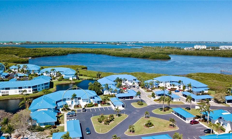Charming, light filled two bedroom two bath condo with vaulted, high ceilings in the living room & dining area. Located in desirable, gate guarded, ten minutes from Anna Maria Island beaches, beautiful Perico Bay Club. This second level home has lovely west water views from the living room, open air balcony/porch & the master bedroom. Looking across the lake & over to the Bay, you will enjoy watching bird life while sipping your morning coffee. Winter sunsets will delight you in the evening. This well maintained condo has a new air conditioning system, new refrigerator, white Corian kitchen counters, a stackable front load washer & dryer, a carport steps away from the entrance, neighborhood heated pool & spa, tiled flooring throughout with bedrooms carpeted & en suite bathrooms. Monthly maintenance fee of $701 covers all exterior building upkeep, flood insurance for the structure, basic cable, internet, pest control, water & sewer, trash pickup, neighborhood pool & spa & the larger PBC community pool, tennis & pickleball courts, kayak storage & grounds maintenance. The beauty of Perico Bay Club is its fabulous location: only ten minutes to Anna Maria Island beaches to the west & only ten minutes east to the "mainland" for shopping, groceries & banks plus famous Robinson Preserve within a short distance. The community has 24/7 guard gated entrance for security. Amenities within Perico include a Junior Olympic heated pool located next to the large clubhouse with meeting rooms, a library & fitness room, four lighted tennis & pickleball courts, two fishing piers & kayak launch & storage. Perico's manicured grounds (300 acres) include 13 scenic lakes, the surrounding Intracoastal Waterway & Palma Sola Bay. Organized into 15 different neighborhoods, each offers their own smaller pool & spa. This community is truly a bird lovers paradise offering an incredible variety of birds & marine wildlife: white pelicans, roseate spoonbills, herons & egrets!