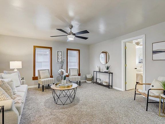 Beautiful move in ready home! entire home has been remodeled to a modern finish. large open foyer at the entrance, concrete kitchen and island counter tops with enough space for a dining table, main bedroom in on main floor , upper level consist of 2 bed rooms and a playroom/ family room , new carpeting throughout, partial basement, partially fenced in large yard on a double lot, detached one car garage.