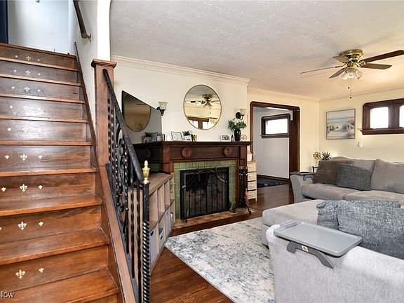 Absolutely charming colonial with so much character and detail! Beautiful hardwood floors. Central air.. The lovely kitchen includes maple cabinetry, laminate floors and tile backsplash and an eating area. The formal dining room has hardwood floors and built-in corner cabinets. The inviting living room has a fireplace, hardwood floors and fabulous woodwork. The hardwood continues into the bedrooms. 2 bedrooms have been combined to create an owner's suite with an office (can easily be changed back to 3 bedrooms,) There is also an enclosed porch overlooking with backyard views. There is a walk-up attic ready to be finished. There is a full basement. Enjoy a large, 2 car detached garage. What an amazing location! Close to everything, hospitals, University Circle, Little Italy , shopping, restaurants, museums and more! Home warranty included. All applianced included.