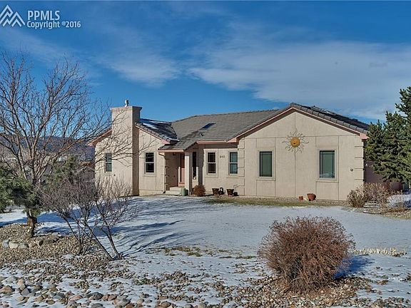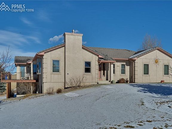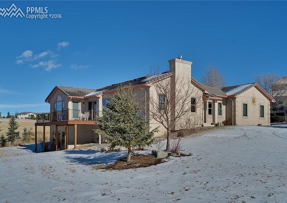 Stunning, high quality home with newer wood Anderson low E glass casement windows & sliding doors. Hardwood floors grace the main level. Fireplace with stone hearth with coffered ceilings in great room. Breakfast bar & eat in kitchen features a large walk in pantry & island. Separate dining room. True main level living. Wrap around deck with access from both kitchen nook & dining room to provide several outdoor living options. Big views of Pikes Peak/front range. Lot backs to open space with no neighbors behind. Huge laundry room. Walk out lower level provides a large family room, storage area and office with built in bookshelves (or bedroom #4), Upgraded mechanical systems include 2 furnaces with oversized A/C unit and water heater upgrades in 2007. Central vacuum system with accessories. Low maintenance exterior includes tile roof with newer 6" gutter system and composite decking with metal railings. Mature landscaping features aspen and pine trees.
