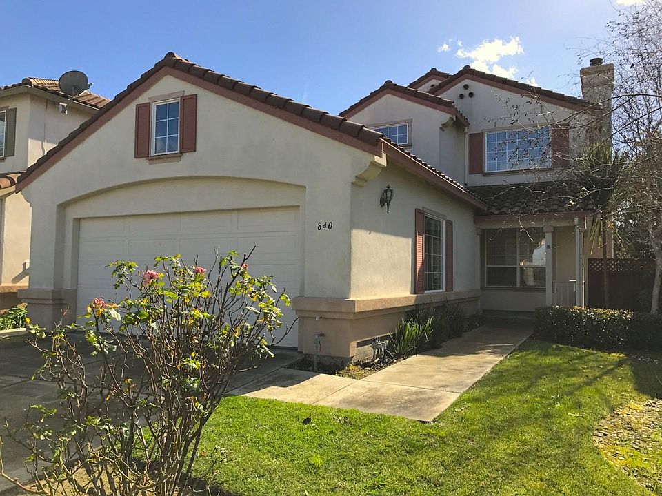 Well-maintained 3 bed 2 bath open floor-plan in one of the best Creek Bridge locations; close to Creek Bridge Village Shopping Cntr. Bright and airy interiors include a double height ceiling in the living room and a bonus second-floor loft/office/den space.Wood-burning fireplace for cozy evenings. Easy-care Pergo laminate flooring. Two freshly painted guestrooms with brand new carpet. Spacious Master Suite w/vaulted ceilings, walk-in closet and double sinks. A sunny kitchen with ample storage, tiled counters, tiled floors and a pantry. Crisp white appliances include a stove, dishwasher, refrigerator, and brand new built-in microwave. The dining area has a sliding door that opens to the fully fenced backyard, w/paver patio and several stunning Rose bushes. 2 car garage w/wash & dry hookup, newer water heater (2016) + bonus water softener left as a courtesy without warranty. An exceptional space to call home!