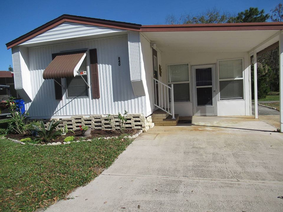 840 Century Drive 1 bedroom;1 bathroom; 546 sq.ft. ; $12,000 This is a charming home located in Hidden Golf Club. The Home has a newer roof 2019 and many updates. Entering the home you walk into a living room with a queen fold over couch (makes into a bed) continuing over to kitchen which is stock with dishes, microwave and coffee maker. Moving down the hall you see the Florida Room which has been converted into an eating area with table and chairs. and a cute day bed. There is an outside patio to the back of the house with lots of green space.