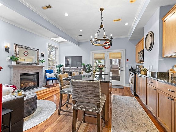 Stylish two-bedroom condo well located in the City Point section of South Boston. Initially converted in 2006, this unit is one of three in a charming Victorian Mansard. It features an open floor plan with a large granite island kitchen, maple cabinetry, stainless appliances, a gas fireplace, hardwood flooring, soaring ceilings, and a slider to a huge private deck. Both bedrooms are generously spacious, easily fitting king-size beds, offering comfort and luxury. Other features/amenities include in-unit laundry, excellent closet space, storage in the basement, and a large shared yard. This location is steps to the Broadway shops, all bus lines, M Street beach, and minutes to the Seaport.